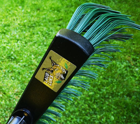 Der LAUB LUKS® ist zu 100% auf das Rechen von Wiesen und Rasen getrimmt. Die abgewinkelten Borsten sind kräftiger denn je und ersetzen die herkömmlichen, fächerförmig angeordneten Metallzinken