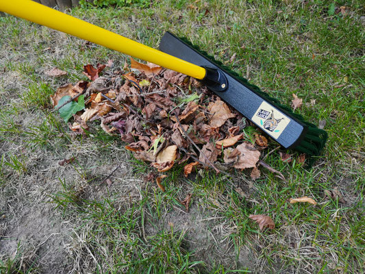 herkömmlicher Rechen. Gleich vier Borstenreihen mit genügend Abstand zwischen den starken Borstenbündeln stehen für die Rechenkraft des LAUB LUKS®. Seine Leichtigkeit ist dabei folgerichtig und